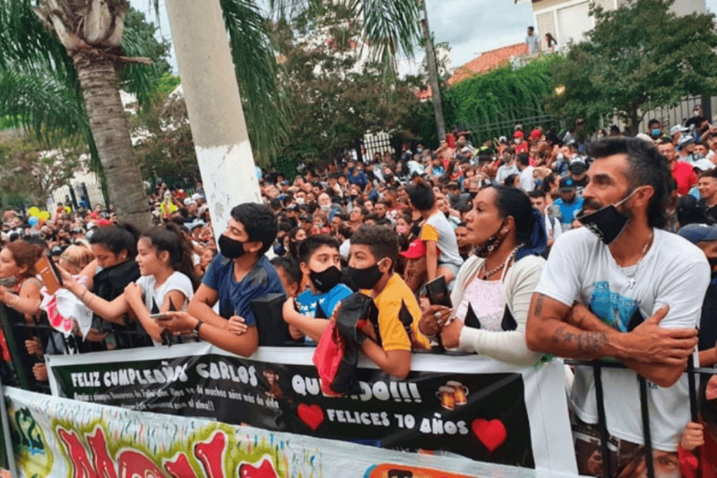 El festejo de cumpleaños número 70 de La Mona Jiménez generó polémica por la aglomeración de las personas en la puerta de la casa del cantante. Luego de 10 meses de contacto virtual con sus seguidores, el máximo referente de la música cordobesa se reencontró con su público.