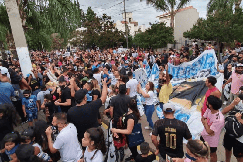 A pesar de tener un lunes cargado de intensas lluvias, los fanáticos de La Mona no dudaron a la hora de concurrir a la puerta de su casa de la calle Fader en el Cerro de Las Rosas, en Córdoba.