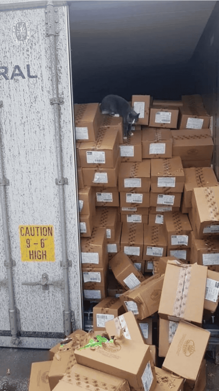 Un gato logró sobrevivir tres semanas dentro de un contenedor comiendo bombones. El contenedor iba en un barco que viajó el 26 de diciembre desde Odessa (Ucrania) a Israel.