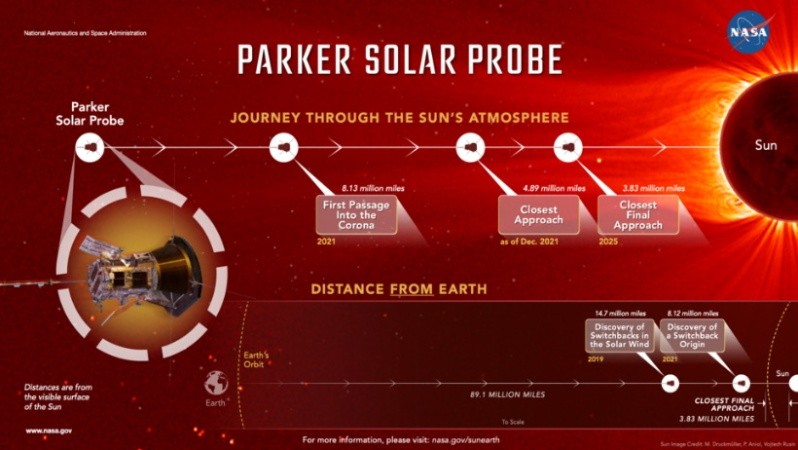 La sonda solar Parker Solar Probe fue lanzada para estudiar el Sol en el 2018. Debía acercarse a este durante siete años para llegar a su máxima distancia, 6 millones de kilómetros. La estrategia consiste en entrar y salir rápidamente, realizando mediciones del entorno solar con un conjunto de instrumentos desplegados detrás de un grueso escudo térmico.