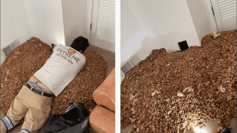 El dueño de una casa quedó desconcertado después de que el control de plagas descubrió los "ahorros de toda la vida" de un pájaro carpintero escondidos dentro de sus paredes. Nick Castro, propietario de Nick's Extreme Pest Control, recibió una llamada de un residente preocupado en Glen Ellen, California, quien vio "gusanos y gusanos de la harina" arrastrándose por su casa.