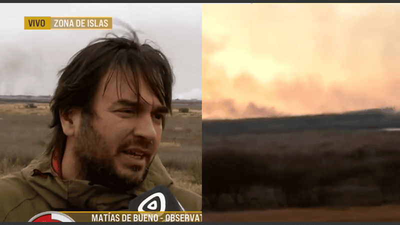 Tras ese diálogo con De Bueno, pasadas las 13, la periodista Almudena Munera contó en vivo desde las islas que se había generado un nuevo foco. Al combate de los brigadistas se sumaron el helicóptero y el avión hidrante.