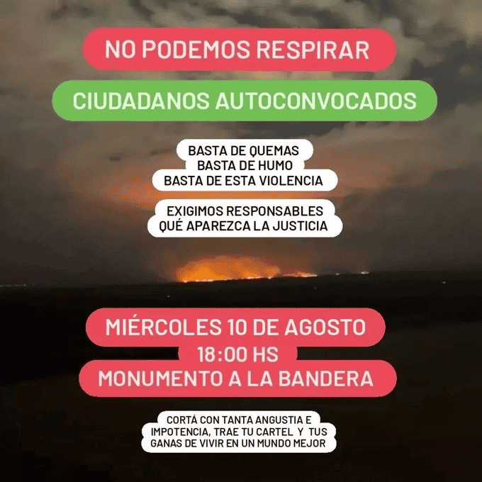 Desde las 18, muchas personas se acercaron al Monumento con las consignas “basta de quemas, basta de humo, basta de esta violencia”.