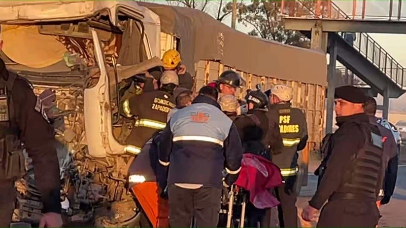 Un fuerte choque entre dos camiones generó severas complicaciones de tránsito en el ingreso a Rosario por la autopista a Córdoba. Por la violencia del impacto, el conductor de uno de los vehículos quedó atrapado dentro de la cabina y personal de bomberos Zapadores trabajó en el lugar para rescatarlo.