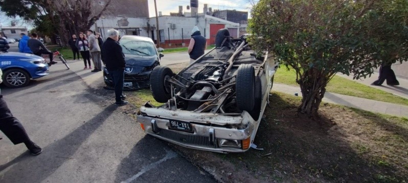 Como consecuencia del impacto, el Falcon terminó volcado sobre la ochava, mientras que el vehículo más moderno quedó obstruyendo parte de la calzada y con el frente destruído.