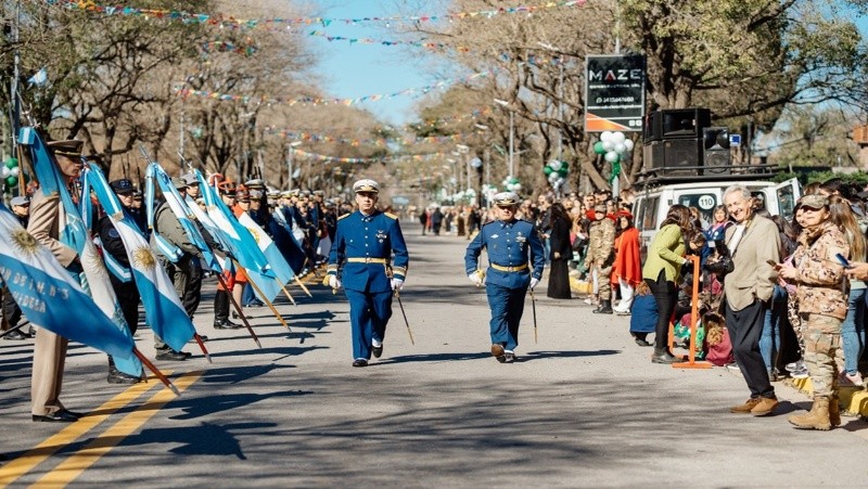 Eran cerca de las diez y media de la mañana y el Regimiento de Granaderos a Caballos, comenzaba a formarse sobre la calle Hipólito Yrigoyen, y si bien su traje azul, sus hombreras rojas y sus caballos se robaban el asombro de los presentes, no eran los únicos en participar de esta histórica ceremonia, que también reunía a Los Combatientes de Malvinas, cuerpos navales, militares, instituciones escolares, bomberos voluntarios y Policía de Santa Fe.