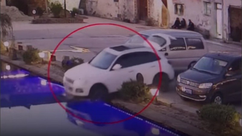 La secuencia tiene, además, otro dato particular: el coche estaba estacionado de frente a un estanque. Por lo tanto, salió disparado hasta caerse al agua.