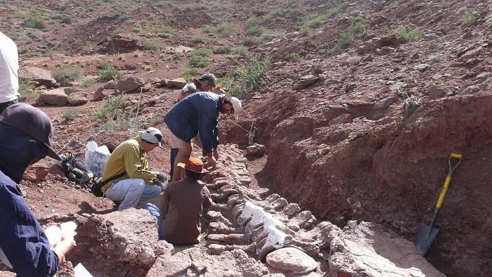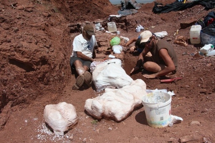 "Si bien se encontró hace un par de años, es tan grande el ejemplar que nos está llevando mucho tiempo extraerlo, lleva mucha logística pero justamente con los pocos materiales que se han recuperado corresponde sin dudas a uno de los dinosaurios más grandes", le dijo a Télam Alberto Garrido, geólogo que trabaja en la excavación.