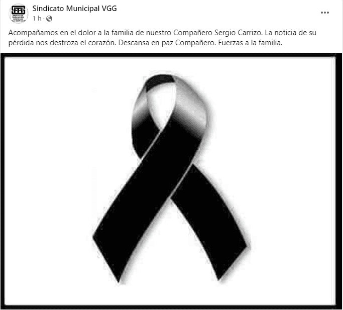 Tanto la familia Carrizo como el sindicato Municipal de Villa Gobernador Gálvez confirmaron esta mañana la triste noticia. "Acompañamos en el dolor a la familia de nuestro compañero Sergio Carrizo. La noticia de su pérdida nos destroza el corazón. Descansa en paz compañero. Fuerzas a la familia", expresó el gremio.