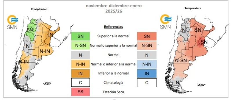 El Servicio Meteorológico Nacional (SMN) difundió un nuevo informe con el pronóstico climático trimestral correspondiente al período noviembre 2025 – enero 2026. Para la región sur del Litoral, el organismo prevé lluvias inferiores a las normales y temperaturas superiores al promedio.