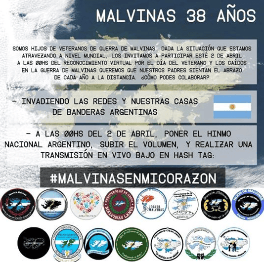 “Lxs hijxs de los ex combatientes de Malvinas te contamos brevemente que significa Malvinas para nosotros. Mi viejo mi héroe”, dice la campaña, que además invita a poner el himno esta medianoche (cuando se inicie el jueves 2 de abril), en el marco del encierro por el aislamiento obligatorio ante la pandemia del coronavirus.
