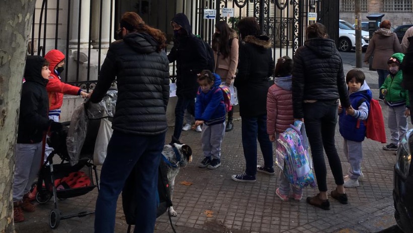 Desde una institución ubicada en Tucumán y bulevar Oroño, Radiópolis (Radio 2) acompañó a un grupo de pequeñitos de 5 años que se reencontraban con compañeritos y compañeritas. A pesar del alcohol en gel y la toma de temperatura, estricto protocolo que se cumple con cada uno de los niños y niñas que ingresan, ase complicaba evitar los abrazos.