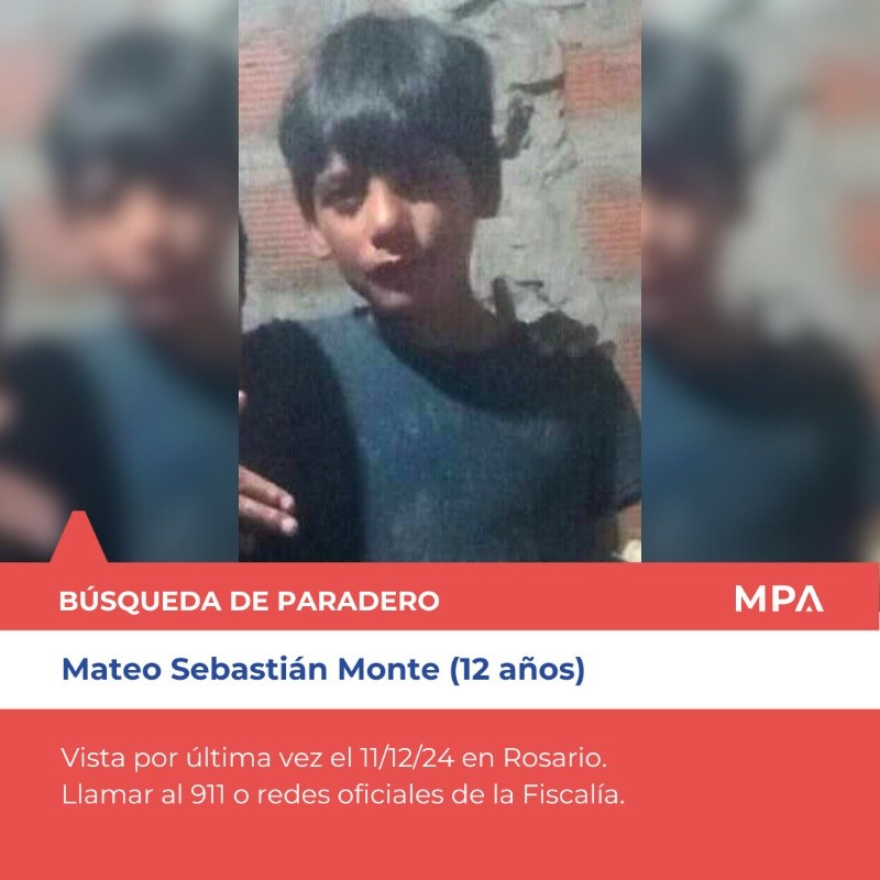 "La Fiscalía Regional 2, informa que Mateo Monte fue hallado en buen estado de salud", indicaron desde el Ministerio Público de la Acusación (MPA) este lunes a la mañana.