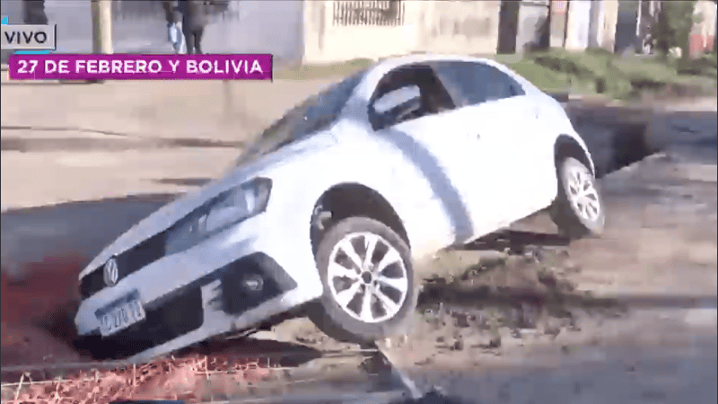 “No había señalización ni nada, doblé y me metí en el pozo. En la otra cuadra está la señalización, pero acá no. A mí no me pasó nada, pero si pasa alguien en moto puede ser grave”, señaló el conductor en Cada Día (El Tres).