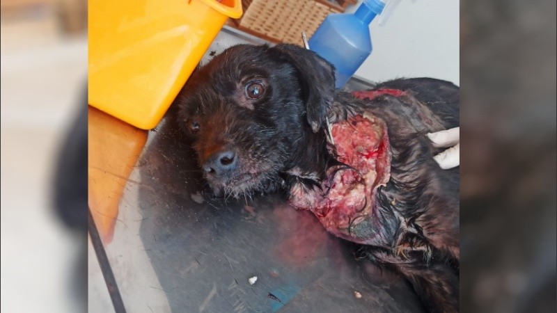 El perro fue llevado por la Policía Comunitaria a una clínica veterinaria de Reconquista al 1200 y luego de las curaciones fue trasladado a una proteccionista ubicada en Peyrano al 2600.