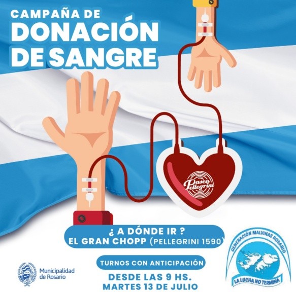 Este martes 13 la ciudad de Rosario tendrá una importante campaña de donación de sangre y registro de médula ósea. La misma comenzará a las nueve de la mañana y será con turnos previos.