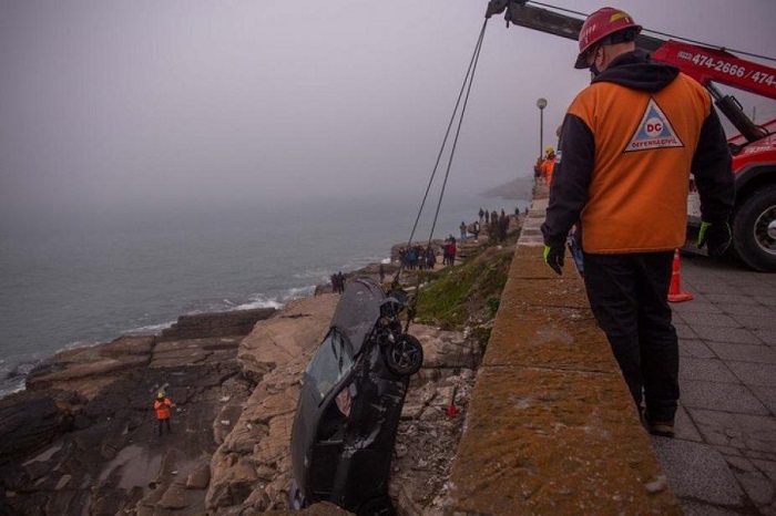 Un auto cayó este domingo desde un barranco frente al mar en la ciudad de Mar del Plata, luego de que su conductor, quien resultó ileso, perdiera el control del vehículo y se precipitara sobre las rocas en la zona de Playa Chica, informaron fuentes policiales y municipales.