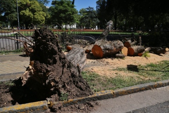 Según relató la periodista Almunera Munera en desde Balcarce y Montevideo en el programa Cada Día (El Tres), el jacarandá se desprendió por completo desde la raíz frente a los Tribunales Provinciales. El único daño provocado fue una reja que se encuentra en el parque.