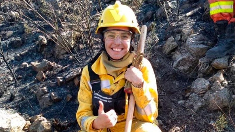 Eugenia Ferrero, integrante del cuartel de Ucacha, se encontraba combatiendo el fuego en Alpa Corral cuando sintió un fuerte dolor abdominal producto del peso de la mochila de agua.