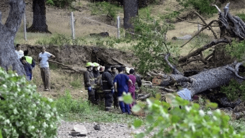 Un gigantesco roble pellín de 40 metros cayó sobre el agua e impactó contra Martina Sepúlveda, de 2 años, y Matías Mercanti, de 8 años.