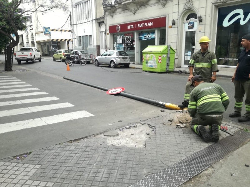 Pasadas las 10 de la mañana estaba llegando al lugar una grúa con una nueva columna para instalarla. El tránsito estaba momentáneamente cortado en Urquiza al 1200 y desviaban líneas de colectivos.