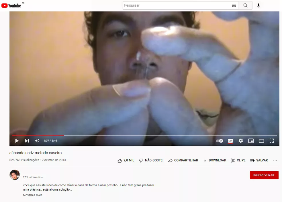 El video se titulaba "afinando nariz con método casero" y la plataforma ya lo dió de baja. Ocurrió la semana pasada en San Pablo, Brasil. Según informaron los médicos al portal G1, el paciente ingresó a la Unidad de Emergencias de Campo Limpo con una herida infectada en la nariz después de intentar realizar una cirugía domiciliaria.