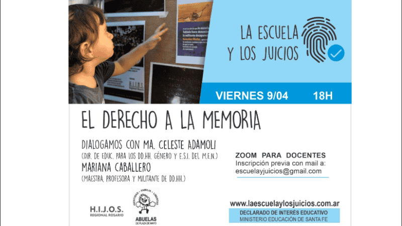 El programa La escuela y los juicios invita a los maestros y maestras de Santa Fe a participar de un encuentro virtual y charla sobre “El derecho a la memoria”.