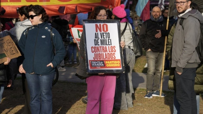 En paralelo a la presencia de Milei en el acto por el aniversario de la Bolsa de Comercio, agrupaciones sociales y sindicales se convocaron este viernes a las 17 en la plaza Sarmiento, desde donde marcharán hasta Corrientes y Rioja para manifestar su repudio a la visita presidencial y a sus políticas de gobierno.