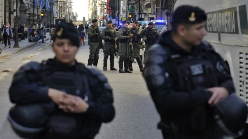 En el microcentro rosarino hubo un importante despliegue de las fuerzas de seguridad para montar el operativo de custodia y resguardo del presidente. Desde temprano, se vallaron las inmediaciones de la Bolsa de Comercio y se cortó el tránsito de 16 a 22 en distintos sectores de Corrientes, Paraguay y Santa Fe.