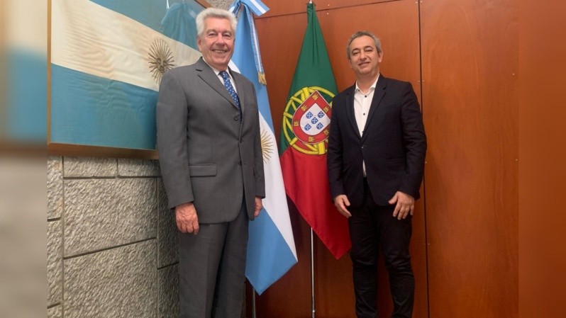 El titular del Palacio de los Leones también mantuvo un encuentro con el embajador argentino en Portugal, Rodolfo Gil. La charla avanzó sobre las posibilidades de cooperación entre Argentina y el país luso, principalmente en cuanto a la agenda de interacción económica y cultural que seguramente incluya a Rosario en sus próximos movimientos.
