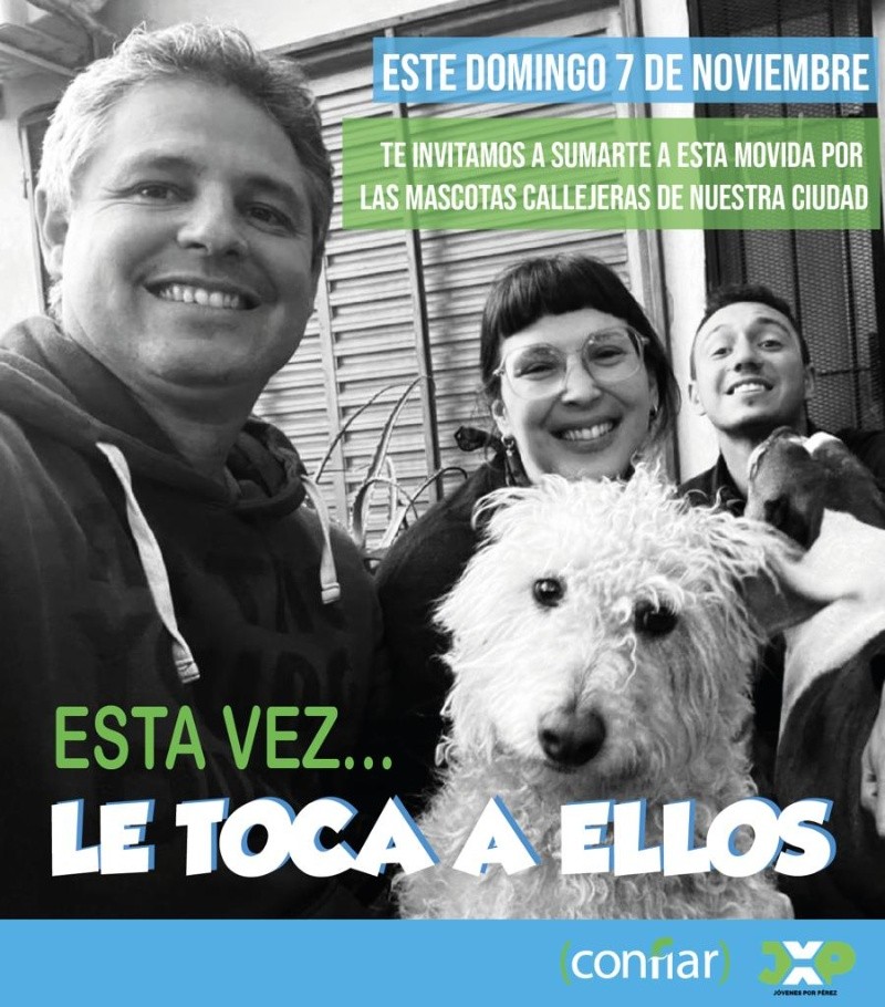 El próximo domingo 7 de noviembre se llevará a cabo una jornada de concientización y ayuda a las ONG’s que colaboran con los animales de la localidad de Pérez. El evento será en la Plaza de la Memoria, ubicada en Av. San Martin y 9 de Julio, a partir de las 17.