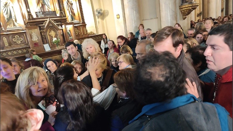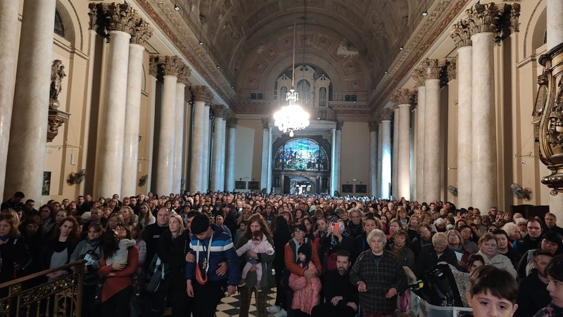 La catedral, símbolo por excelencia de la religión católica en Rosario, se llenó de gente, tanto en la nave central como en los costados. Muchas personas quedaron afuera y se congregaron en las escalinatas. Se trataba, en numerosos casos, de personas enfermas, ancianas, niños y también había muchos jóvenes. Cabe señalar, de acuerdo a los testimonios de quienes siguen al grupo cada martes, que en esta oportunidad fue más gente que nunca: todos estaban emocionados por la gran convocatoria.