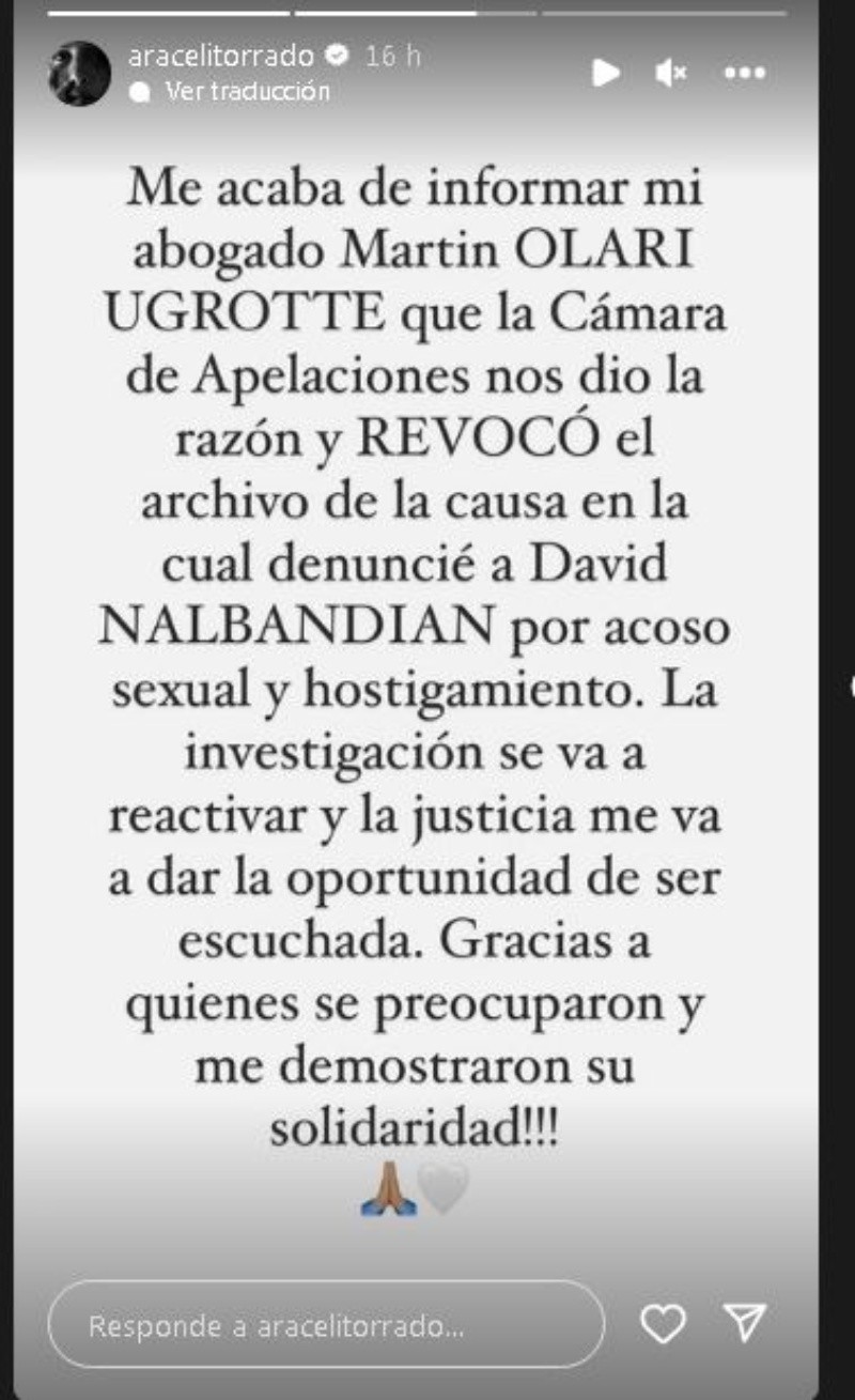 La Justicia hizo lugar a la apelación del fallo que desestimaba la denuncia de Araceli Torrado, la ex novia rosarina de David Nalbandian, en la causa que se archivó dos veces por la aparición de una cámara que colocó el ex tenista en su dormitorio para espiarla.
