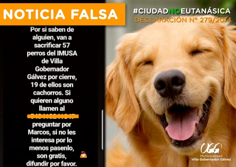 Desde la secretaría de Salud y Ambiente de la Municipalidad de Villa Gobernador Gálvez, salieron a desmentir un mensaje que circula en redes sociales sobre el supuesto sacrificio de animales en el “Imusa” de la vecina ciudad. Aseguraron que la noticia “es totalmente falsa” y “carece de todo sustento” ya que la ciudad se ha declarado “no eutanásica” desde el año 2014. Indicaron que desconocen “el origen y el objetivo del mismo”.