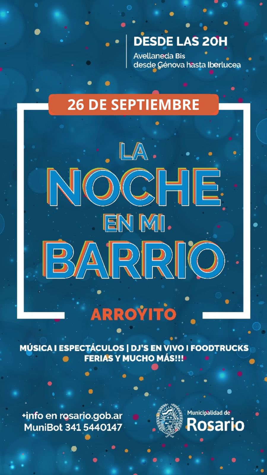 Este viernes el bulevar Avellaneda de Arroyito se vestirá de fiesta con una nueva edición de "La Noche en mi Barrio", el ciclo organizado por la Municipalidad de Rosario. La cita será de 20 a 24 en el corredor comprendido entre las calles Del Valle Iberlucea y avenida Génova, tramo que se convertirá en peatonal.