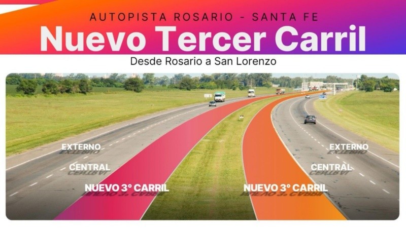 A partir de una inversión multimillonaria que el Gobierno de la Provincia ejecuta en el marco del plan Acuerdo Rosario, que comprende 10 obras para la ciudad, este lunes comenzará la construcción del tercer carril de la autopista Rosario-Santa Fe. Se ejecutará en el tramo de 16 km entre la avenida Circunvalación de Rosario y el acceso a la ciudad de San Lorenzo. Los trabajos fueron adjudicados a la empresa Pose SA, por $41.498.589.398.