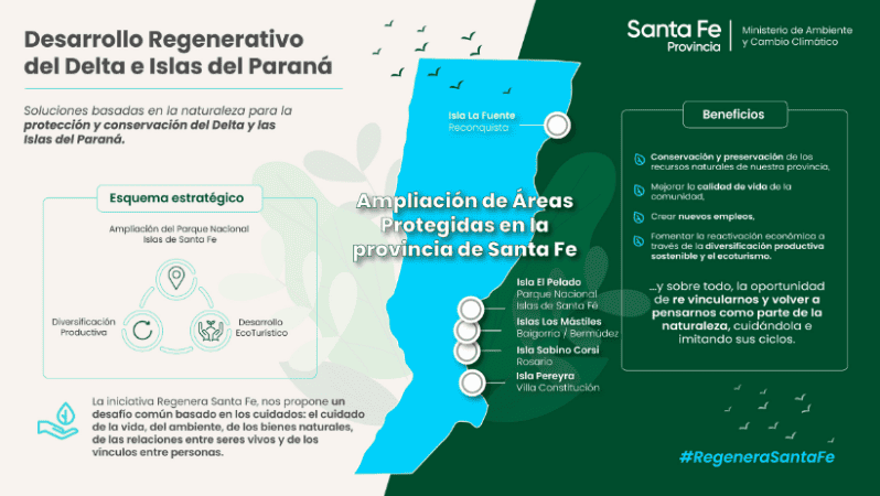 El Ministerio de Ambiente y Cambio Climático de Santa Fe lanzó la iniciativa Regenera Santa Fe con la que buscará ampliar e incorporar nuevas áreas protegidas a la zona del Delta e Islas del río Paraná. En la primera etapa, se sumarán 2600 hectáreas.