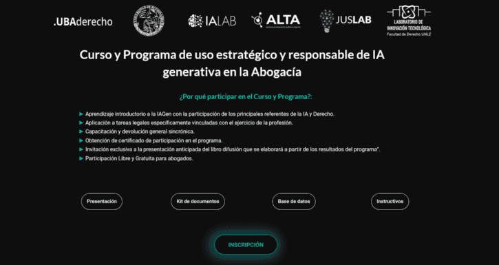 La iniciativa está organizada por el Laboratorio de Innovación e Inteligencia Artificial de la Facultad de Derecho de la Universidad de Buenos Aires (UBA-IALAB) junto a la Red de Innovación Juslab, la Asociación de Impulsores de Legaltech en Argentina (ALTA) y el Laboratorio de Innovación Tecnológica de la Facultad de Derecho de la Universidad Nacional de Lomas de Zamora (UNLZ-LAB). Además, cuenta con la colaboración especial del Ministerio de Justicia de la Nación, a través del Programa Nacional Integral de Inteligencia Artificial en la Justicia.