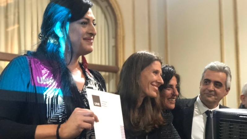 En el acto de este martes estuvieron presentes el rector Franco Bartolacci, referentes del Área de Género y Sexualidades de la UNR, la decana de la Facultad de Psicología, Soledad Cottone, representantes del sector docente y no docente de la Universidad e integrantes de la comunidad travesti y trans de la ciudad.