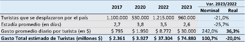 De esta manera, el impacto económico medido a precios reales tuvo así una caída de 20% frente al 8 de diciembre 2022. En esta ocasión, los turistas gastaron en promedio $30.000 diarios cada uno, mientras que la estadía media rondó los 2,6 días.