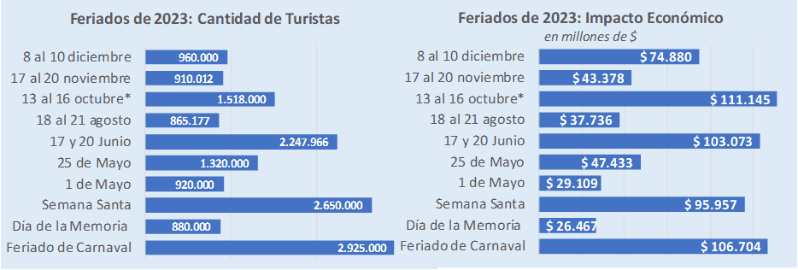 Con los 10 fines de semana largos que ya pasaron durante este año, el total de turistas que viajaron asciende a 15,2 millones y los gastos totales a $675.881 millones.