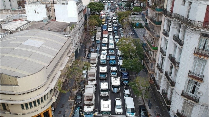 La concentración comenzó a las 8 y pasado el mediodía los vehículos seguían trasladándose lentamente por las calles del centro porteño.