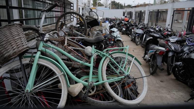 En el interior de la comisaría la situación no cambia mucho. Hay filas de motos y bicicletas incautadas. Es tal el volumen de vehículos que algunos fueron apilados ante la falta de espacio.