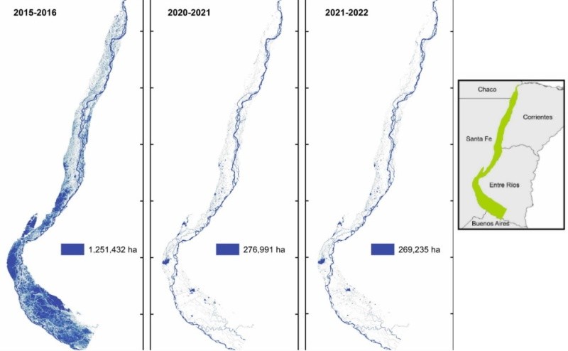 Dos “papers” publicados en revistas internacionales sobre el impacto de las bajantes extremas, del Laboratorio de Hidroecología del Instituto Nacional de Limnología (Inali) que integra Rabuffetti, reflejan con gráficos esa pérdida de la conectividad en las aguas superficiales y también la sequía hidrológica prolongada.