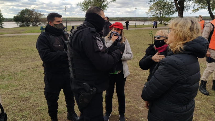 Distinta fue la reacción de algunas mujeres anti coronavirus. Casi como madres, invitaban a los policías a escuchar, les pedían por favor que no se vacunen, y que cuiden su salud. Arriaga, desde su púlpito, sentenció: “Aplaudan a los policías que son víctimas del sistema. Les pagan dos pesos, arriesgan sus vidas”. Los fieles ovacionan, los policías se retiran, y los ajenos a la charla le piden respuesta a la policía. Frases como “Yo no puedo ir a un bar y vos permitís esto”, se escuchaban casi como en un cabildo abierto, justo en la semana de Mayo.