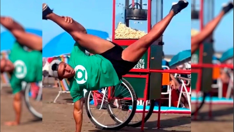 Sobre la primera vez que lo hizo, recordó: “Llegué un día y puse música. A la gente le llamó mucho la atención, se coparon y empezaron a hacer palmas. Se entusiasmaron”. De acuerdo a lo que explicó el “pochoclero bailarín”, como lo llaman en las redes sociales y en la playa, recorre 5 kilómetros por día y sus coreografías son creadas por él.