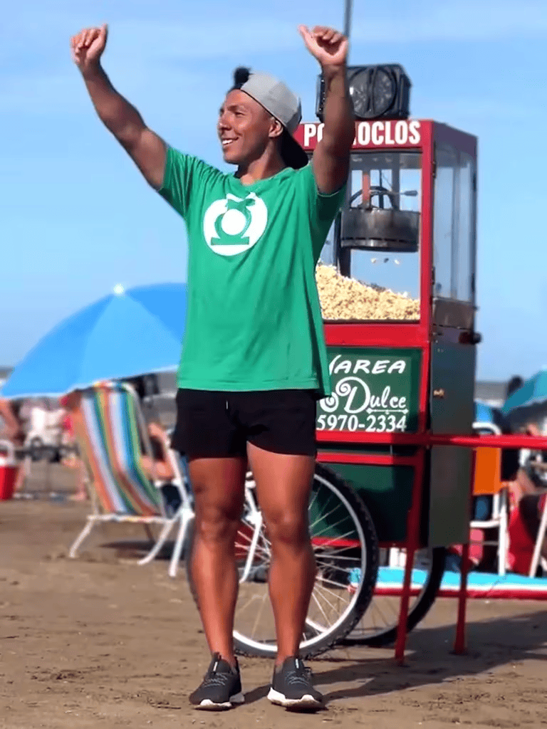“Todo empezó de forma natural. Quería hacer algo diferente en la playa, traerle alegría a las personas. Quería romper estructuras, que me vean como un vendedor ambulante random”, contó.