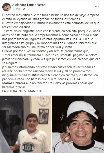 Alejandro Verón, referente de la Iglesia Maradoniana mostró su dolor y angustia por la muerte de su Dios, Diego Armando Maradona. En viaje hacia Buenos Aires, cónto cómo están viviendo a este momento que tomó de inesperado a todo el mundo.