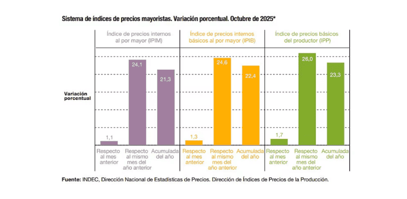 La inflación mayorista de octubre se ubicó en 1,1%, pese al mes de fuerte volatilidad cambiaria por la incertidumbre electoral, y terminó por debajo del Índice de Precios al Consumidor (IPC), que marcó un 2,3% en el mismo período.