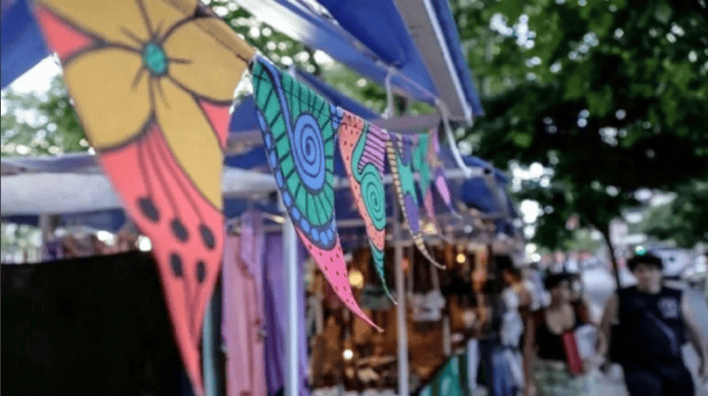 La feria de plaza San Martín es uno de los puntos más reconocidos de la economía social local, donde se comercializan productos de rubros variados como textil, marroquinería, bijouterie y plantas, entre otros.